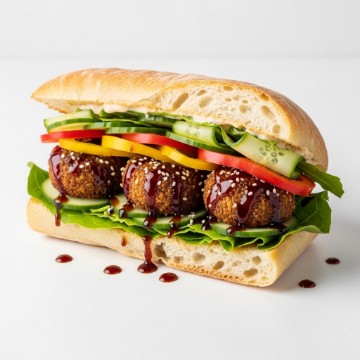 Teriyaki glazed Falafel, capsicum, lettuce, cucumber (vg)